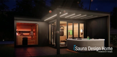 A szaunaházba az egyedi alumíniumtokos tolóajtórendszeren jutunk be, amely szintén biztosítja a 4 évszakos használatot. Belépve a szaunaházba egy pihenőtérbe érkezünk, ahonnan megközelíthető a mini konyha, a vizes blokk (wc, zuhanyzó).